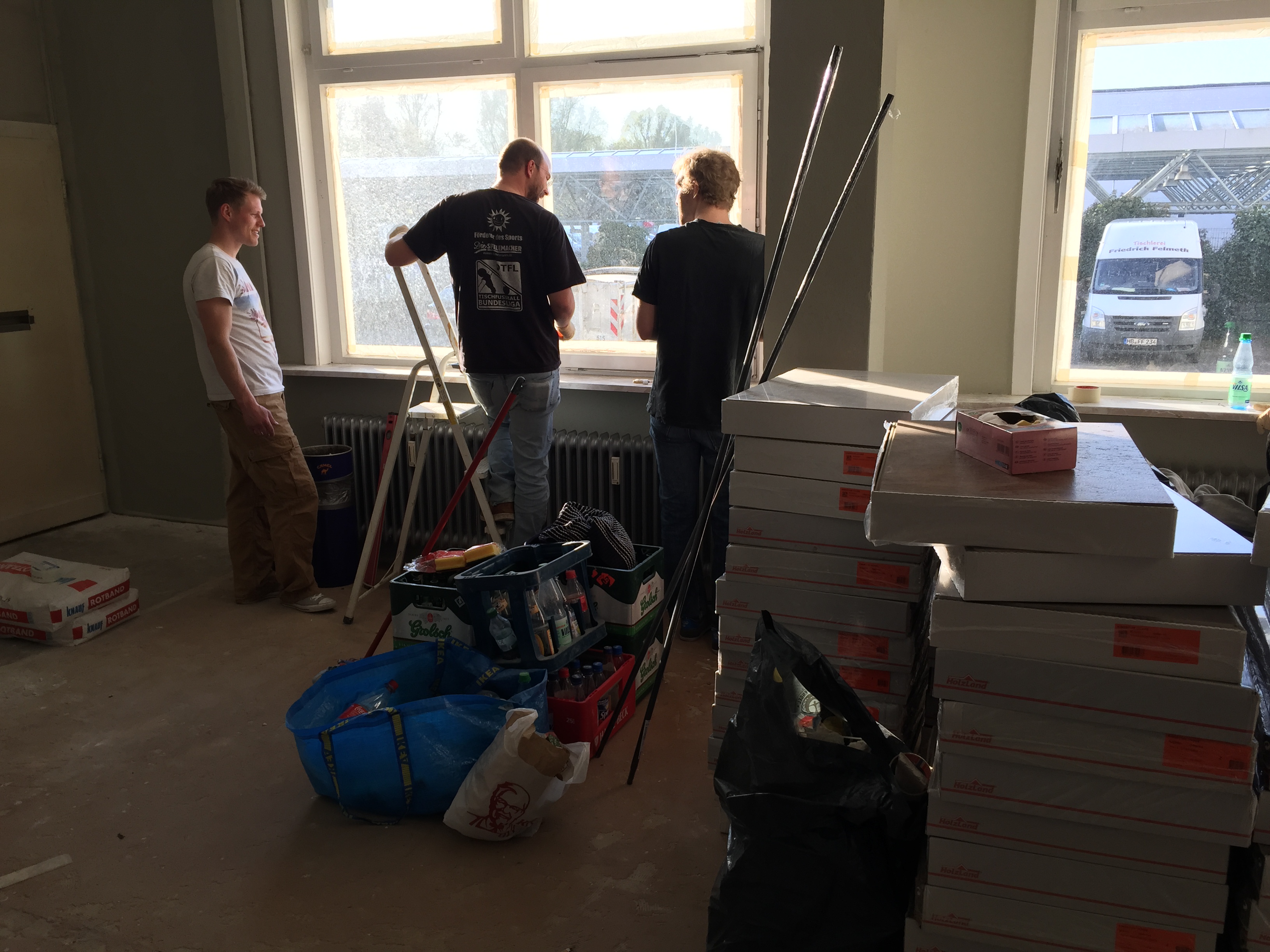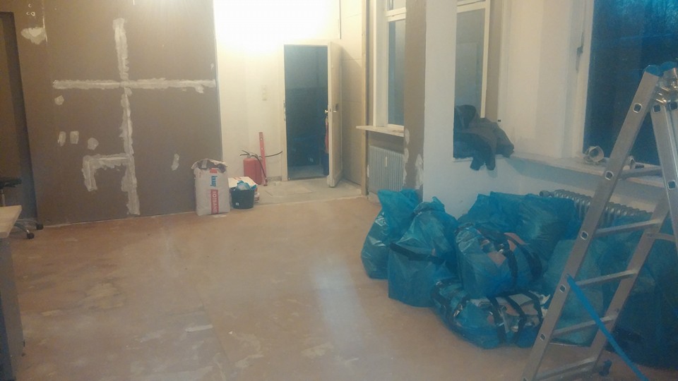 Es geht weiter. Täglich stürzen wir uns für euch (und uns) in den Ring und kämpfen mit Spachtel, Farbeimer, Kabel und viel Ehrgeiz für den perfekten Kickerraum. Vielleicht wird nicht alles bis zum nächsten DYP fertig, aber zumindest alles was nötig ist um jede Menge Spaß zu haben! Schaut auf jeden Fall vorbei und lasst euch das Neue-Raum-Eröffnungs-Party-Mega-DYP nicht entgehen!