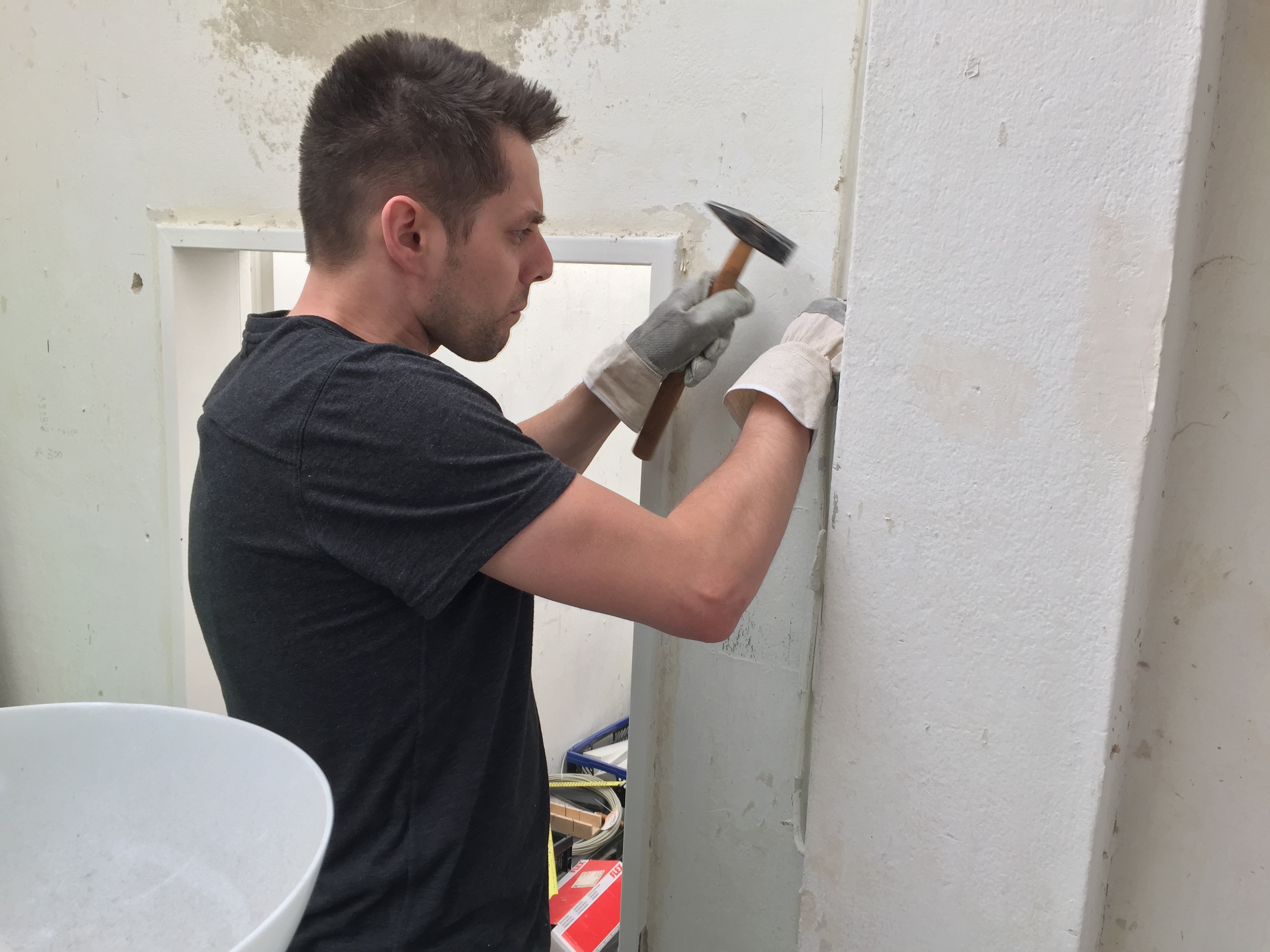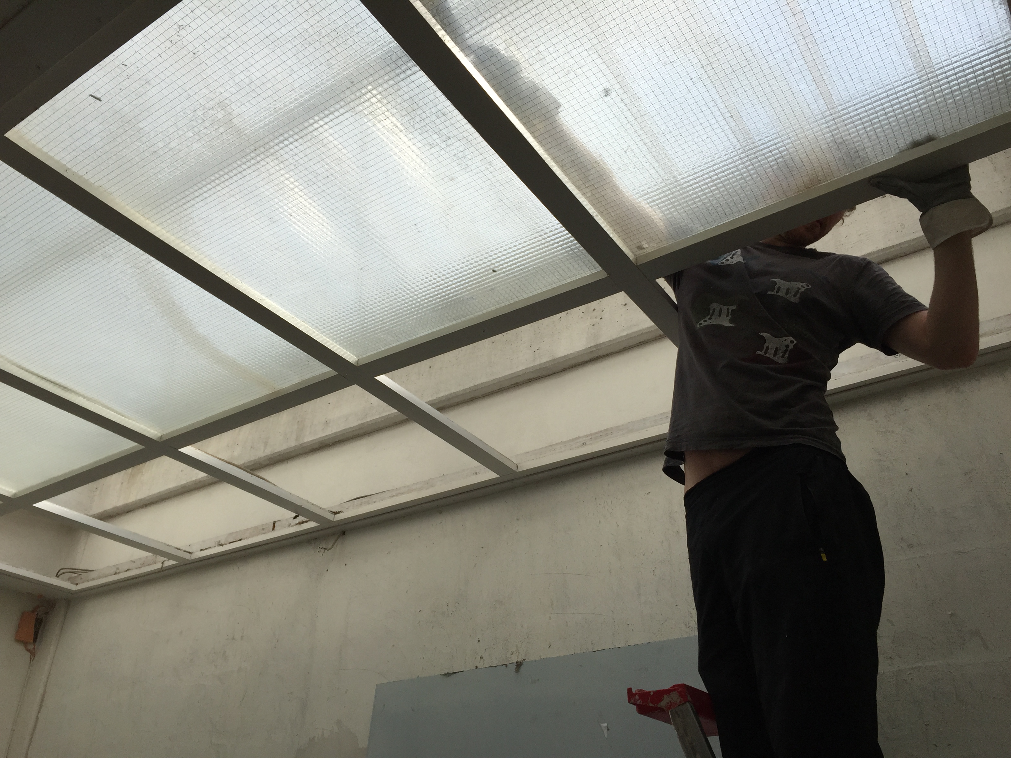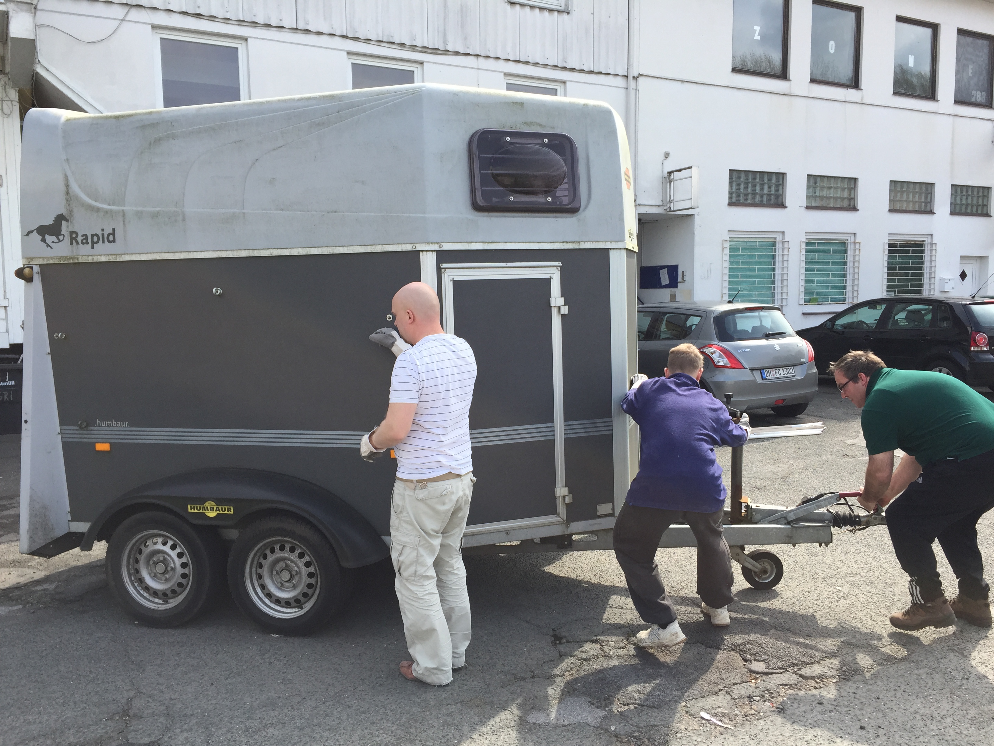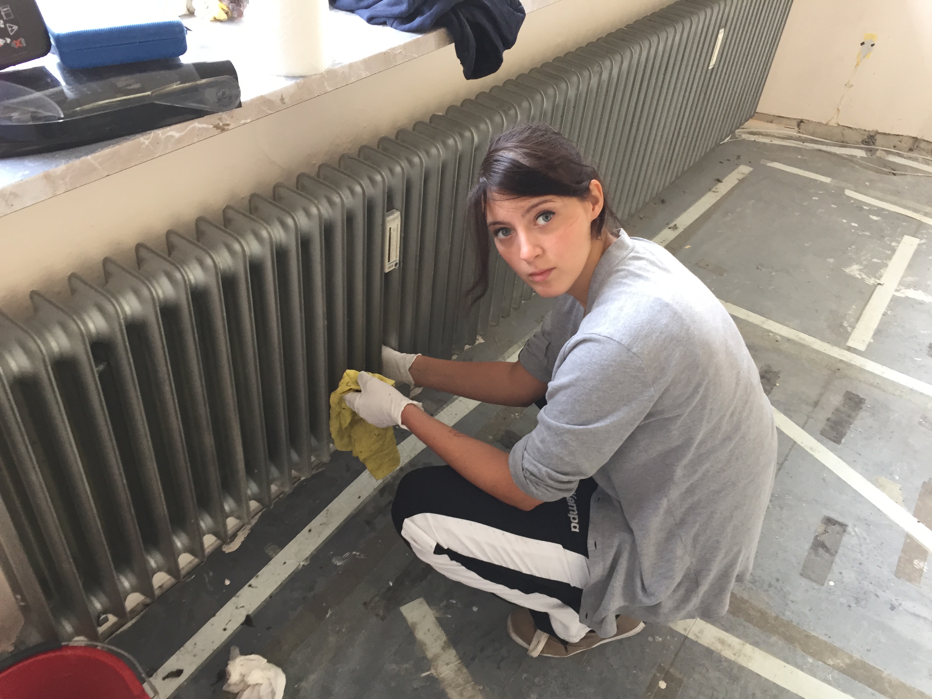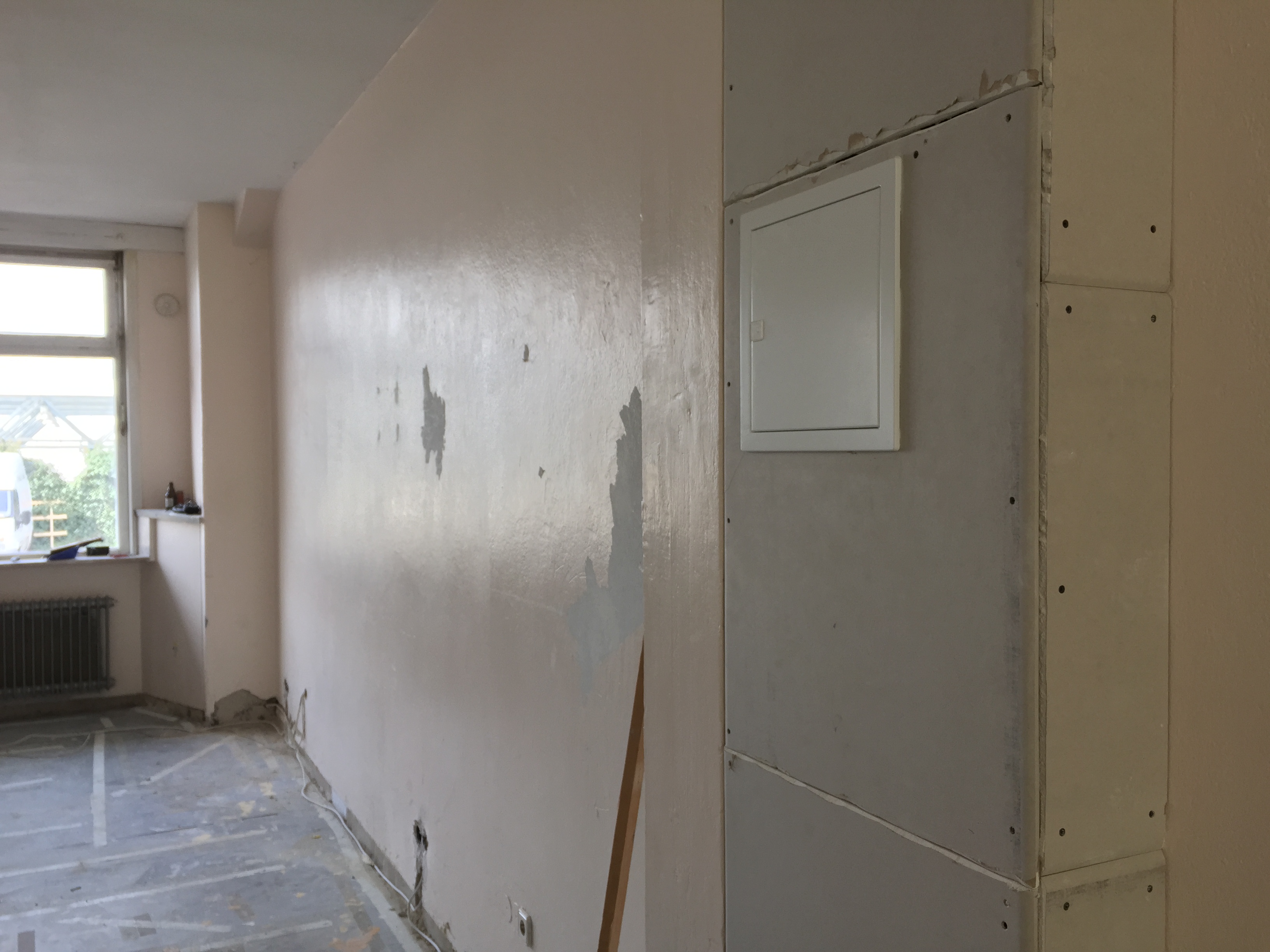 Am Donnerstag sah noch alles wie immer aus. Der geliebte süffige Boden, das ranzige Gardinengut, das Dyp-Final-Podest… Und schon heute ist alles in Schutt und Asche. Ein Container und ein Pferdeanhänger wurden voll gemacht. Alles Alte raus und Platz fürs Neue.